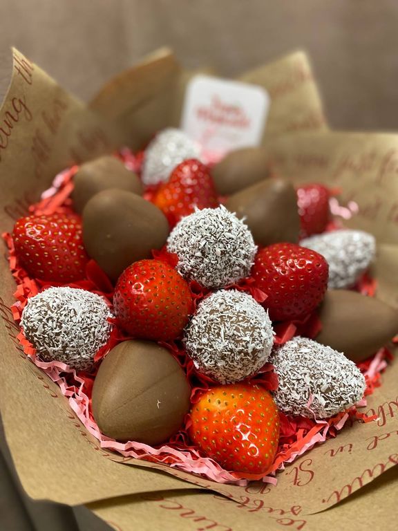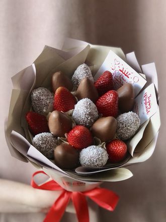 18-19 спелых клубничек (зависит от размера ягод, чтобы букетик был идеально круглым) ❤️ В бельгийском шоколаде