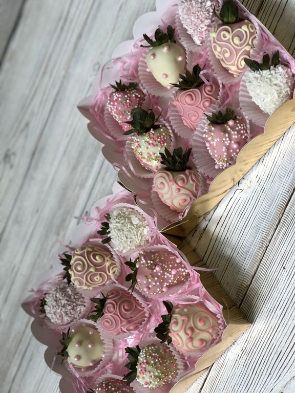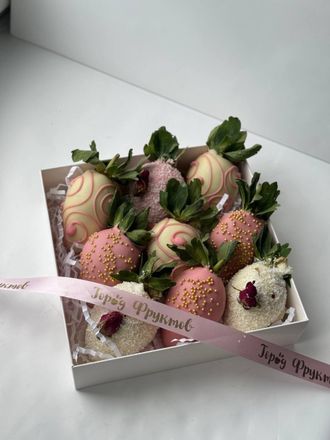 Бокс из 9 отборных клубничек в белом и розовом клубничном бельгийском шоколаде!