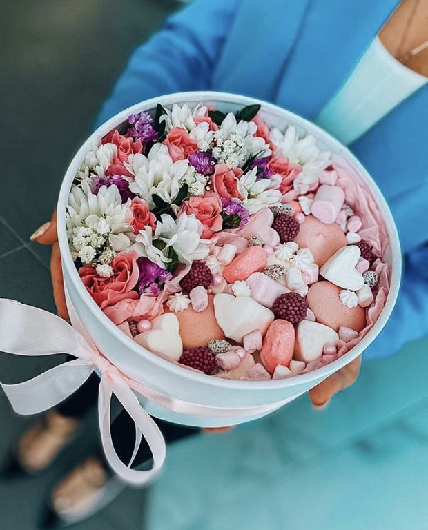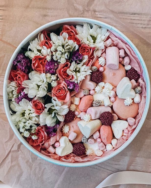 Ароматные живые цветы в сочетании со сладостями идеальный комплимент для любимых!