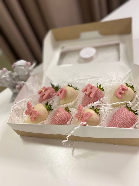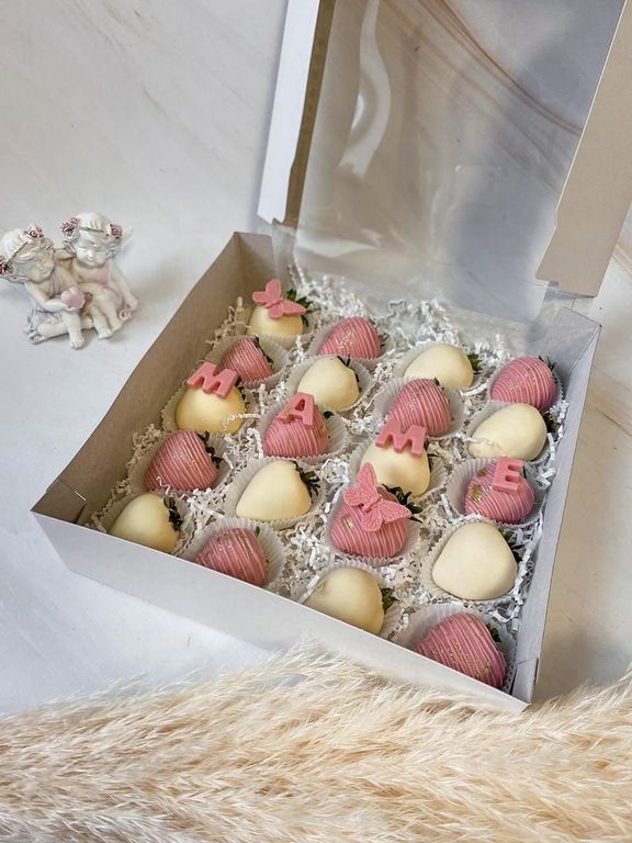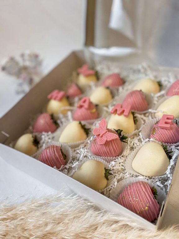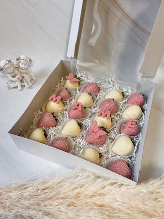 Бокс из 20 клубничек в нежнейшем белом и розовом клубничном бельгийском шоколаде.