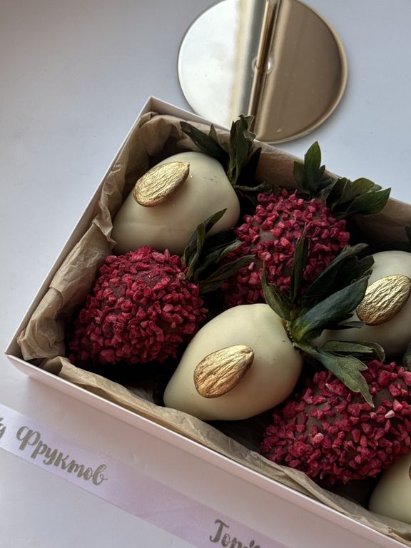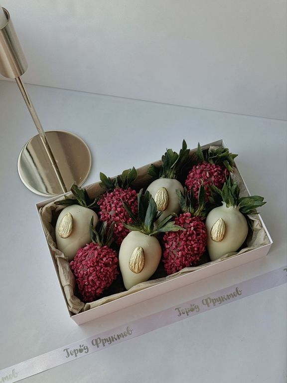 8 клубничек в натуральном молочном и белом бельгийском шоколаде.
