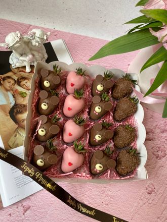 Милейший бокс из 16 клубничек в натуральном бельгийском шоколаде.