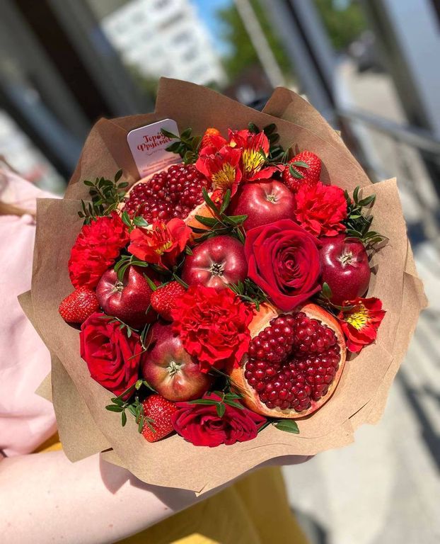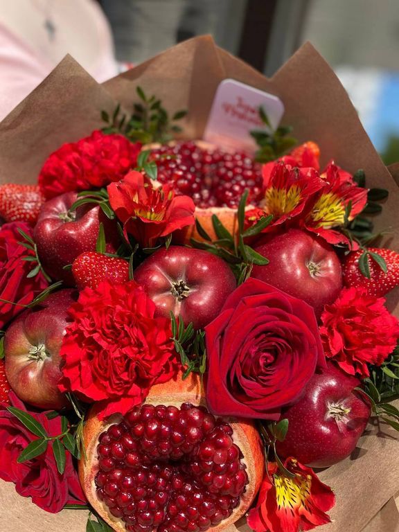Состав: отборные фрукты и ягоды премиум-качества: яблоки, гранаты, клубника.
