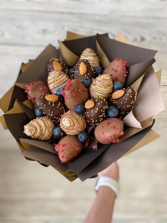15 клубничек в премиальном бельгийском шоколаде, голубика и хрустящий миндаль - восхитительное сочетание вкусов!