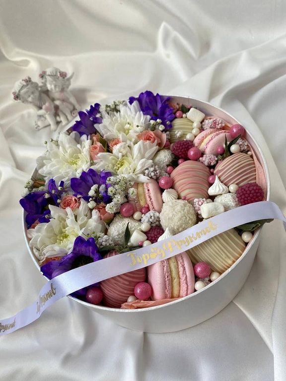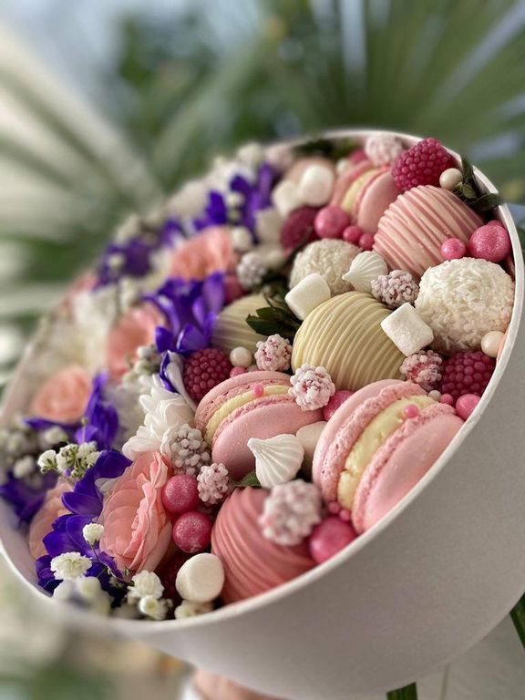 Ароматные живые цветы в сочетании со сладостями идеальный комплимент для любимых!