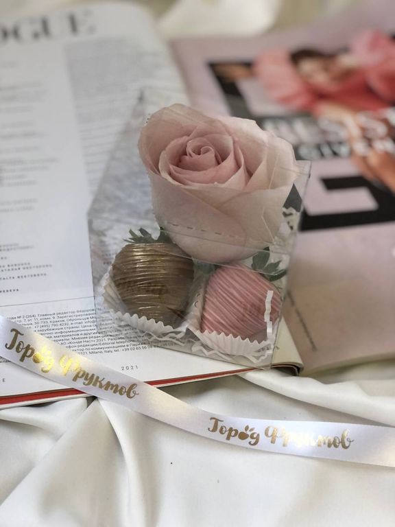 Идеальный вариант корпоративного подарка: сочная клубничка и ароматная роза в воздушной, прозрачной коробочке