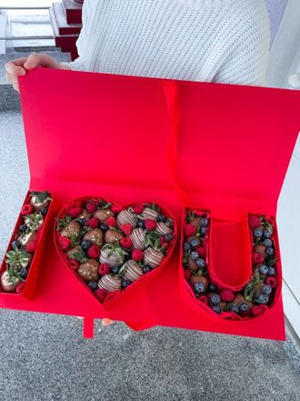 1 кг клубники в бельгийском шоколаде с голубикой и малиной.