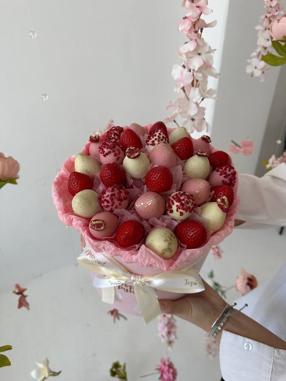 30 идеальных клубничек, свежих и облачённых в бельгийский шоколад(белый и клубниный)