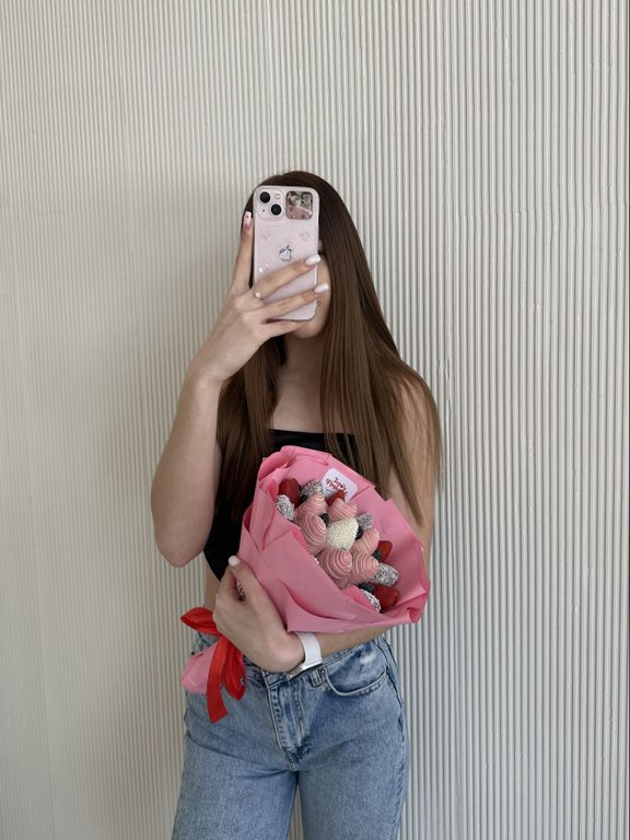 Нежный букет из 19 сочных ягод в белом и розовом клубничном бельгийском шоколаде и голубики.