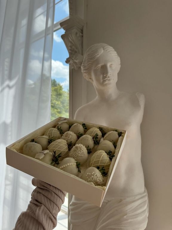 Бокс из 16 клубничек в белом шоколаде.