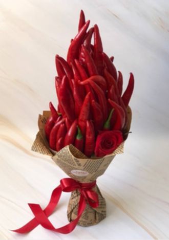 Букет для тех, кто любит креативность и юмор! В составе жгучие перцы ~70 штук, розмарин и красная роза.