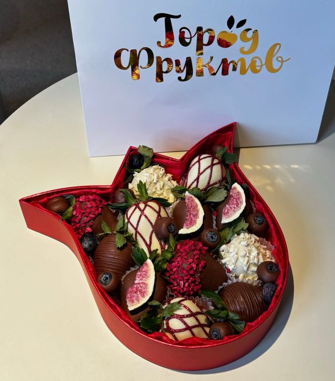 Тюльпаны с клубникой и голубикой в бельгийском шоколаде - лимитированная серия коробочек к 8 марта.